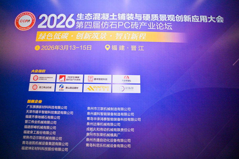 15 марта 2026 года в Цзиньцзяне, Цюаньчжоу, успешно завершились конференция «Экологически чистое бетонное мощение и инновационные решения в ландшафтном дизайне» и 4-й отраслевой форум по производству сборных железобетонных кирпичей, имитирующих камень. Трехдневное мероприятие собрало широкую и разнообразную аудиторию, включая экспертов отрасли, поставщиков оборудования и сырья, а также ведущих производителей сборных железобетонных кирпичей, имитирующих камень, способствуя широкому обмену опытом и налаживанию связей.