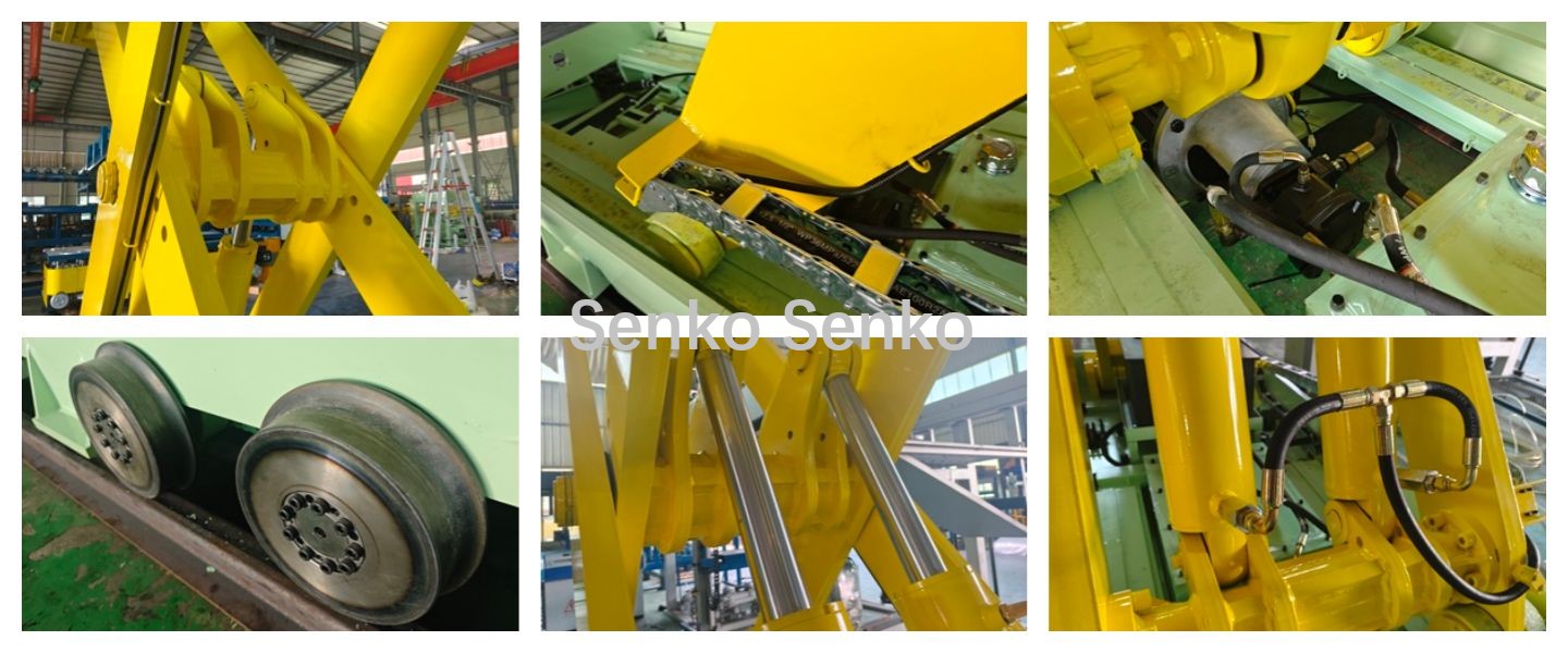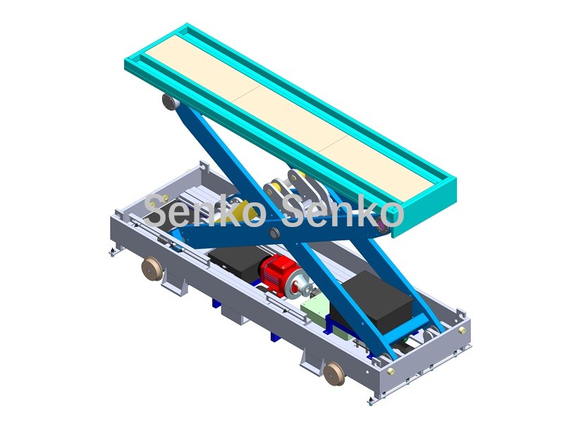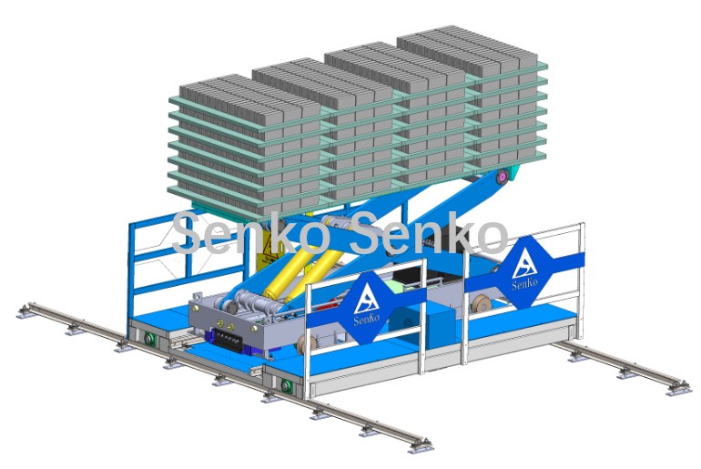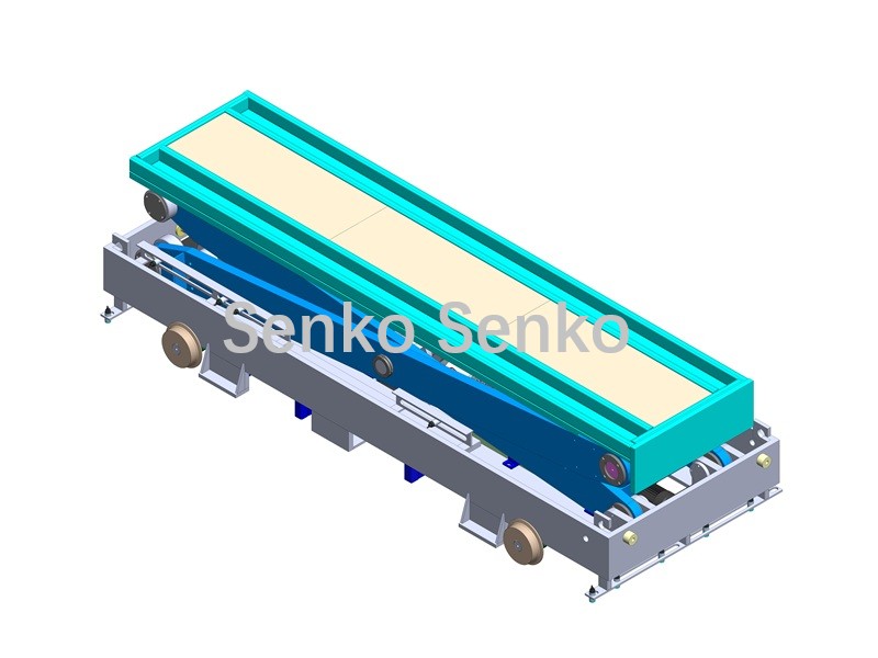 Подъёмный механизм транспортной тележки поднимает изделие, и тележка перемещается в заданное положение в соответствии с заданной целью. Затем она опускается, чтобы установить изделие, тем самым перемещая его из одного места в другое, то есть осуществляя перемещение изделия. (Когда многоуровневая транспортная тележка поднята, она может останавливаться на разных высотах, что позволяет ей выполнять складирование и извлечение изделий из многоуровневых сушильных печей.)
