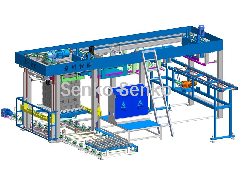 Вся машина состоит из поддона с подъемником для выдержанных кирпичей/блоков, основного укладочного устройства, толкателя/переворачивателя поддонов, укладчика и т.д., что позволяет получить поддон без дна для укладки кирпича. Вся машина приводится в движение серводвигателями и пневматическим приводом, а электропривод с частотным регулированием скорости отличается интеллектуальностью, стабильностью, скоростью, низким энергопотреблением и компактностью. Данная производственная линия отличается высокой степенью автоматизации, а весь процесс управляется компьютерным шкафом, что не только снижает трудозатраты, но и повышает эффективность и производительность.