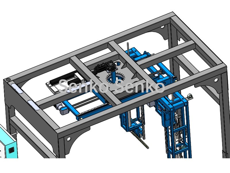 Этот агрегат объединяет сервоприводную подачу, натяжение и обрезку ленты, а также высокоскоростное вращающееся фрикционное склеивание. Он способен развивать усилие обвязки до 300 кН и может перемещаться вверх и вниз для адаптации к разной высоте штабеля.